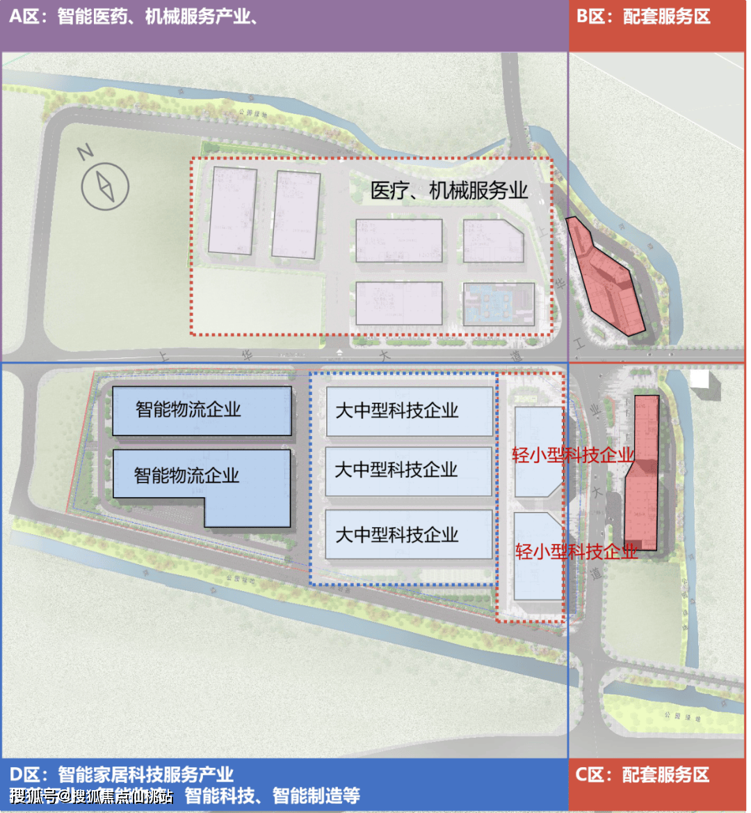 项目全体划分为A、BC、D四大分区,集医疗、制制、科技、家居、物流多方面复合财产于一体的分析社区。